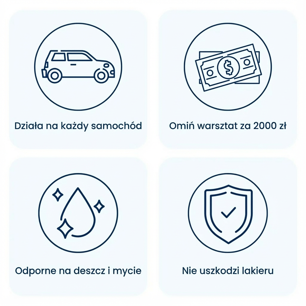 Bez umawiania wizyt, bez narzędzi, bez zgadywania. Wystarczy nałożyć, zetrzeć nadmiar i rysa znika.