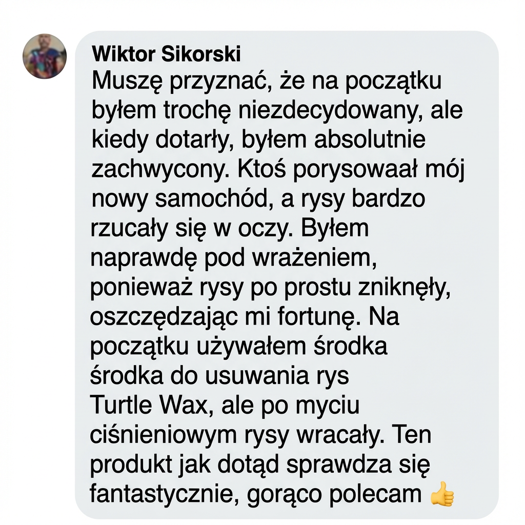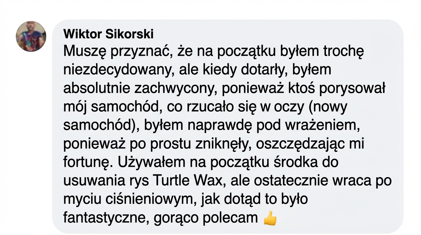 Jeśli będziesz używać urządzenia przez 90 dni i nie zobaczysz rezultatów, po prostu napisz do nas na kontakt@lakierfix.pl, a dokonamy pełnego zwrotu — bez zadawania pytań.