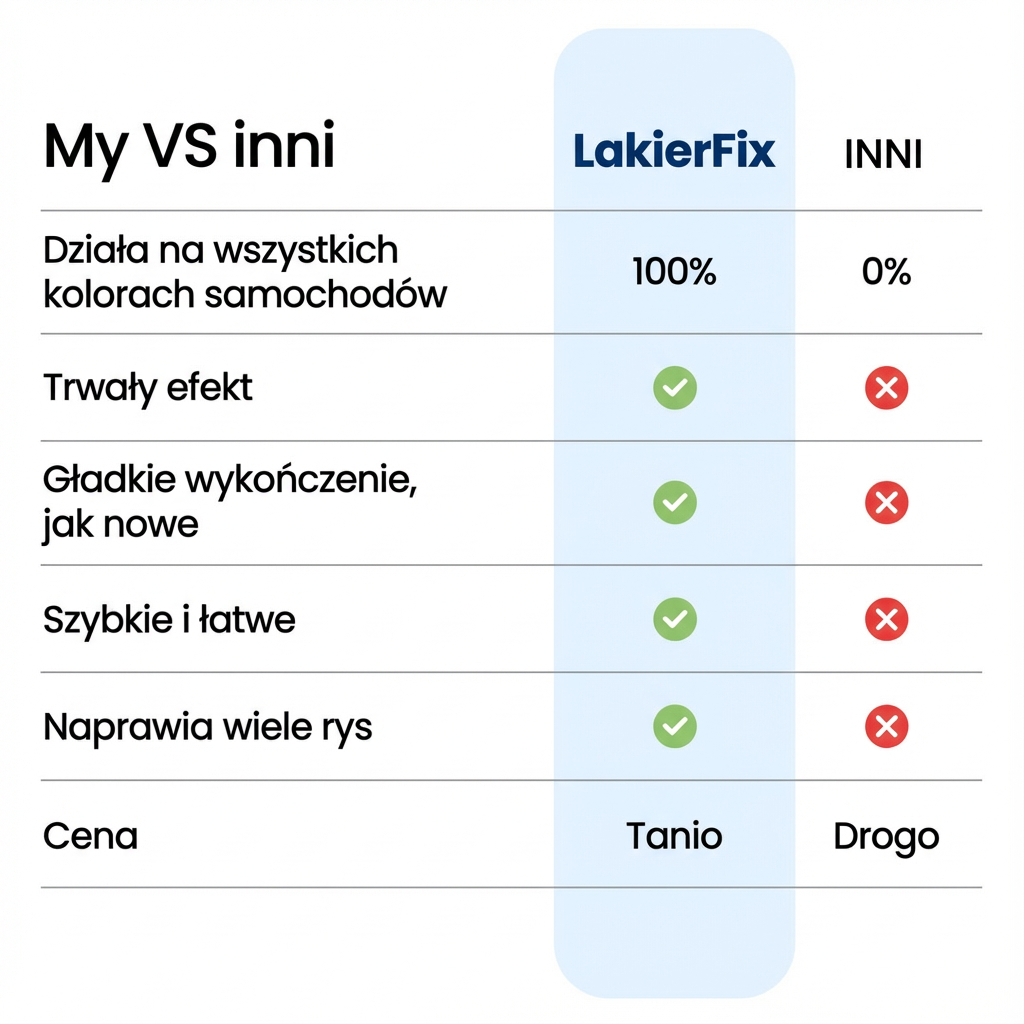 Magiczny Pisak LakierFix usuwa dziesiątki rys za ułamek tej ceny. Trzymaj jeden w aucie a będziesz zawsze gotowy.