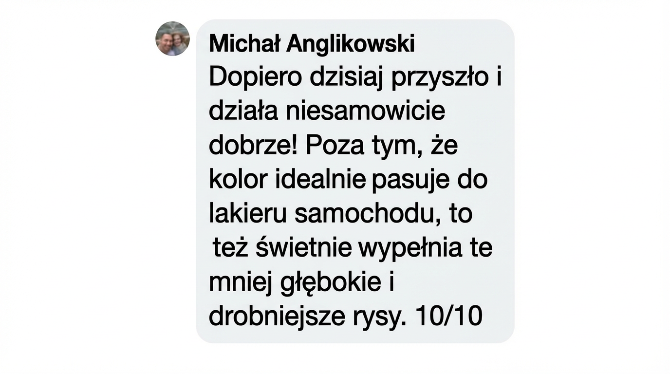 Bez umawiania wizyt, bez narzędzi, bez zgadywania. Wystarczy nałożyć, zetrzeć nadmiar i rysa znika.